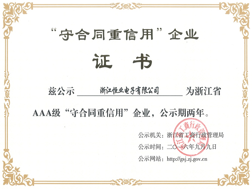 榮獲:AAA級(jí)守合同重信用企業(yè)